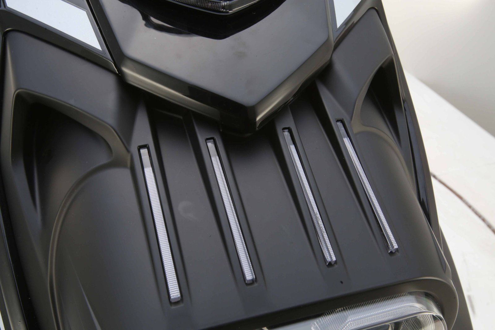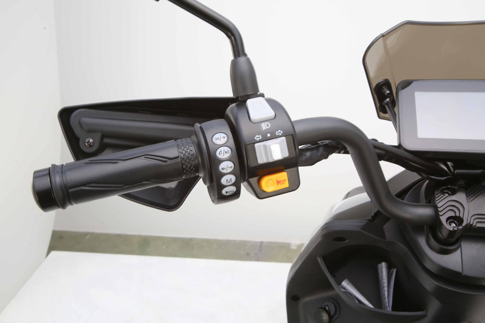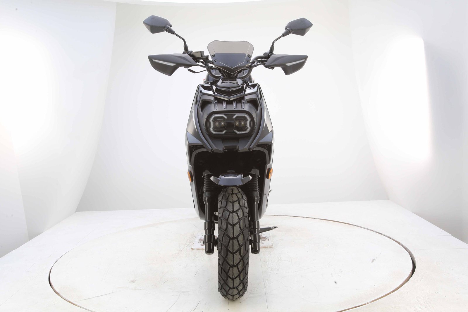 Braking is handled by a front disc brake and a rear drum brake, ensuring effective stopping power. Moreover, the scooter includes useful accessories such as a rear storage box, MP3 player, alarm system, and USB charging port for added convenience.