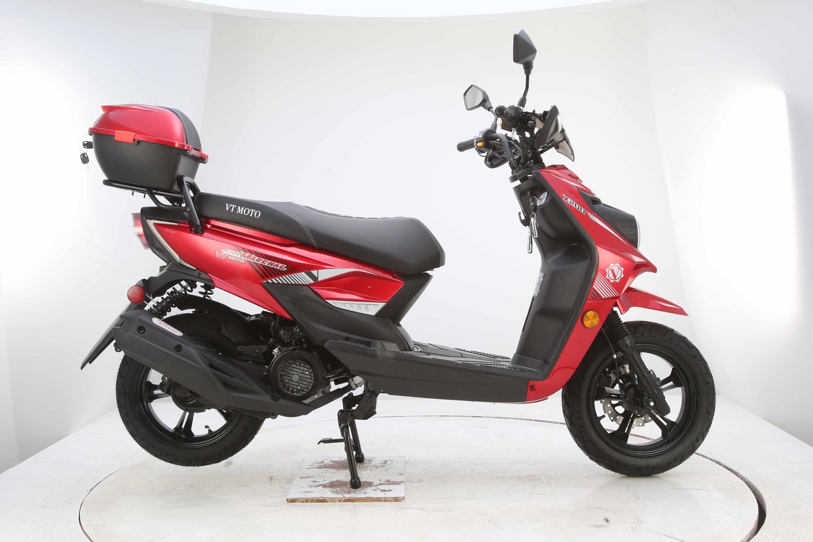 The Vitacci MARSHAL X 200 Street Legal Scooter combines power, style, and advanced features for a superior urban ride. It runs on a reliable 168cc GY6 4-stroke, single-cylinder, air-cooled engine that delivers a maximum power of 6.8 kW at optimal RPM. The scooter comes with an automatic CVT transmission, which provides smooth acceleration without manual shifting.