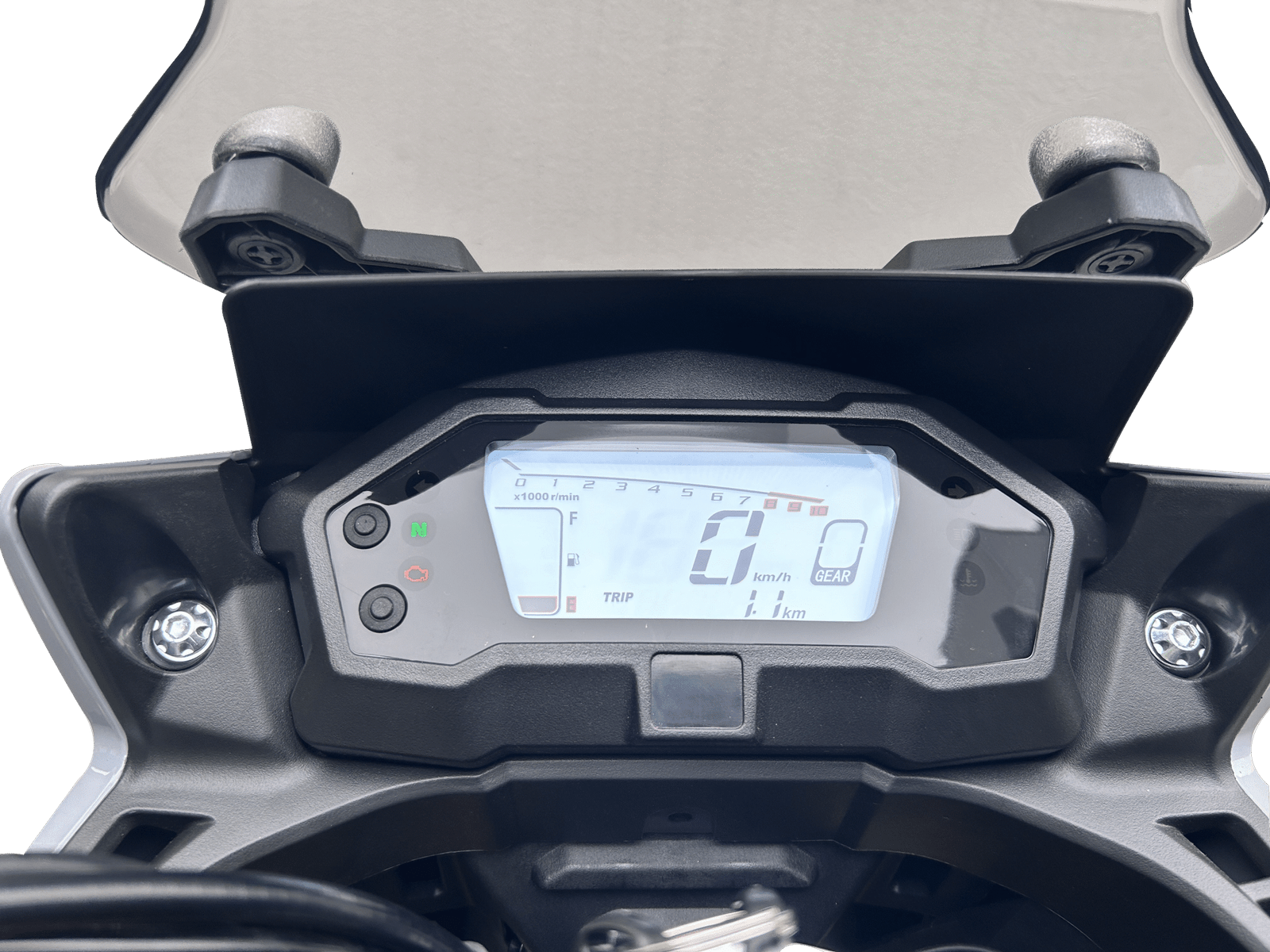 Fuel efficiency and easy starting come thanks to BOSCH electronic fuel injection and an electric start system. The suspension system includes dual inverted hydraulic forks with shock absorbers at the front and a swing arm with a central shock absorber at the rear. This setup delivers excellent handling and comfort on rough terrain.